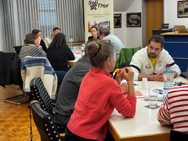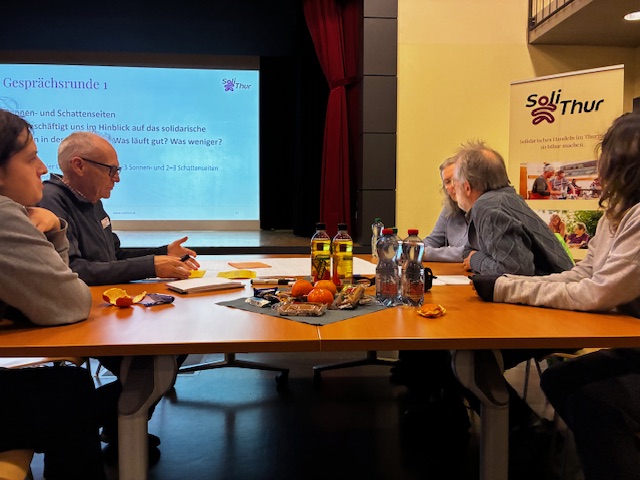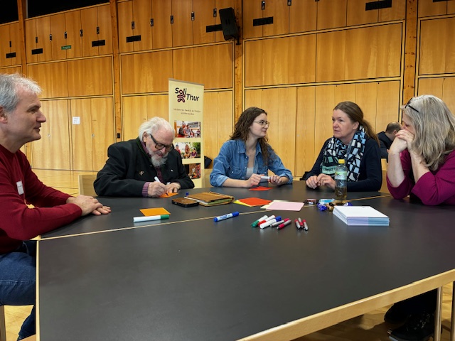 Die Workshops in den 21 SoliThur-Gemeinden laufen bis Ende März 2026. Im Zentrum steht das Verständnis von solidarischem Handeln: Wo zeigt es sich im Alltag der Gemeinde? Wie lässt es sich langfristig stärken? Und wo braucht es zusätzliche Unterstützung? Die Teilnehmerinnen und Teilnehmer gehen diesen Fragen in ihrem direkten Umfeld nach.